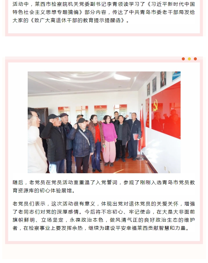 【红映检徽 沽水同心】莱西市检察院开展老干部集中学习活动
