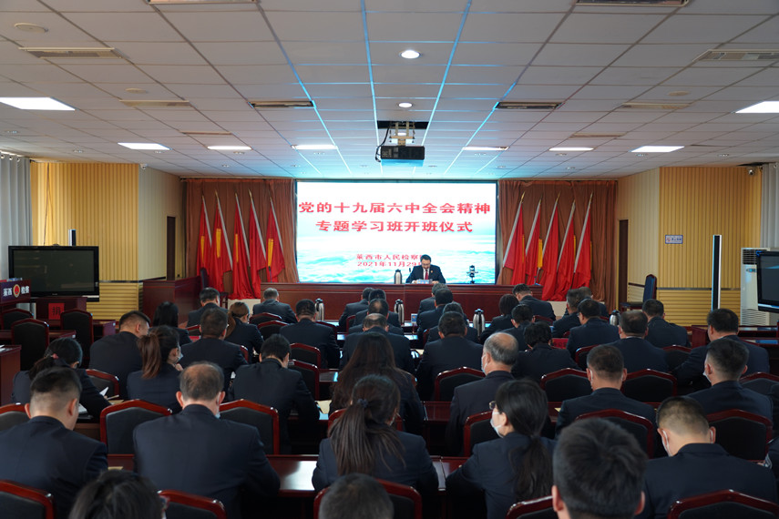 该院党组书记、检察长刘振在动员讲话中指出: 一是要在学习上精心安排、统筹推进。坚持领导“领学”,科学安排“促学”,用好载体“深学”,力求学深悟透、融会贯通。二是要在政治上保持清醒、更加坚定。以“两个确立”统一思想行动,进一步增强“四个意识”,坚定“四个自信”,做到“两个维护”。三是要在履职上精准发力、做得更实。坚持把学习成果转化实际行动,更加充分地履行法律监督职能,服务保障全市经济社会发展大局,以实实在在的检察工作成果作为检验学习六中全会精神的“试金石”。四是要在为民司法上更加自觉、坚守初心。落实为人民司法要求,结合党史学习教育、政法队伍教育整顿,持续深化“检察为民办实事”实践活动,以人民群众的感受作为衡量司法办案的重要标准。五是要在队伍上严管严治、久久为功。要从党的百年奋斗中汲取推进自我革命的历史经验,持续推进全面从严治党、从严治检,持之以恒加强纪律作风建设,努力锻造一支忠诚干净担当的高素质检察队伍。