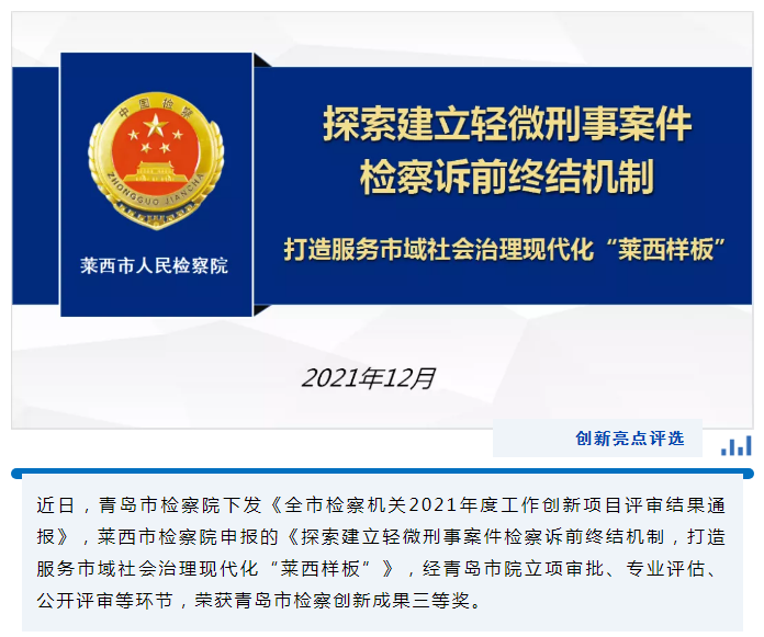 【亮点】号外!号外!莱西市检察院在全市创新亮点评选中获奖啦!