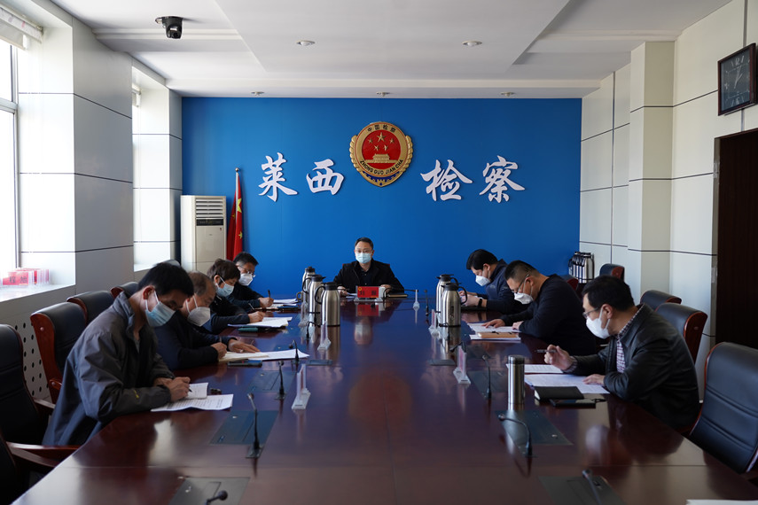 近日,莱西市检察院召开党组会议,围绕在抗疫一线启动“作风能力提升年”活动进行动员部署。会上,该院党组书记、检察长刘振同志带领班子成员深入学习了青岛市委书记陆治源同志和莱西市委书记周科同志在“作风能力建设年”活动动员大会上的讲话精神,研究通过了该院“作风能力提升年”活动实施方案,对在抗疫一线启动“作风能力提升年”活动进行了动员部署。随后,该院各党支部按照院党组部署要求,通过党支部会、党小组会以及视频会、微信群等形式深入开展系列活动,把疫情防控一线作为活动的主战场,作为激发干警抗疫斗志、提升干警综合能力的大课堂,通过活动促学促思促防疫,确保疫情防控和检察工作“两不误”。