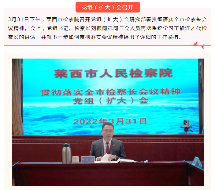 【作风能力提升年】莱西市检察院召开党组(扩大)会 研究部署贯彻落实全市检察长会议精神