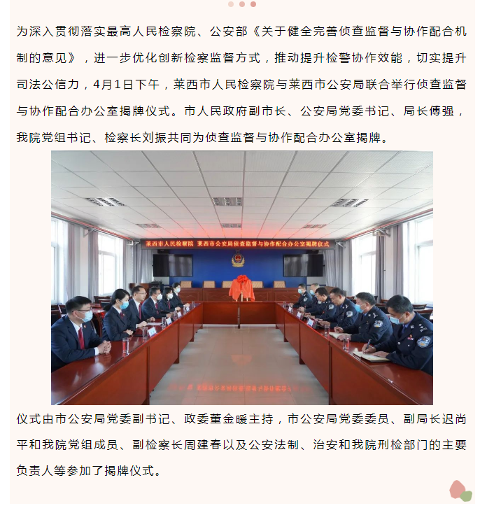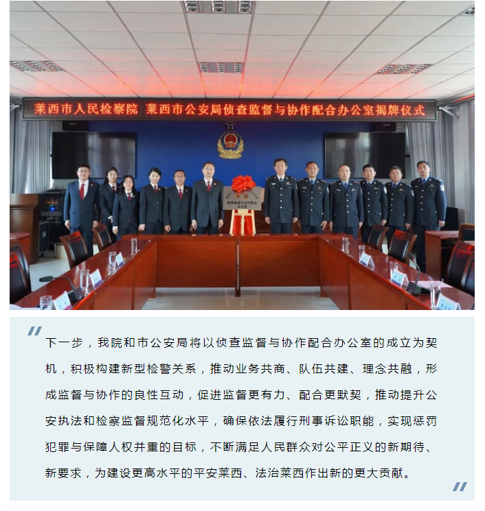 【作风能力提升年】检警协作 共建新平台——莱西市“侦查监督与协作配合办公室”挂牌成立