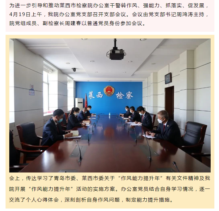 【作风能力提升年】莱西市检察院办公室党支部召开支部会议