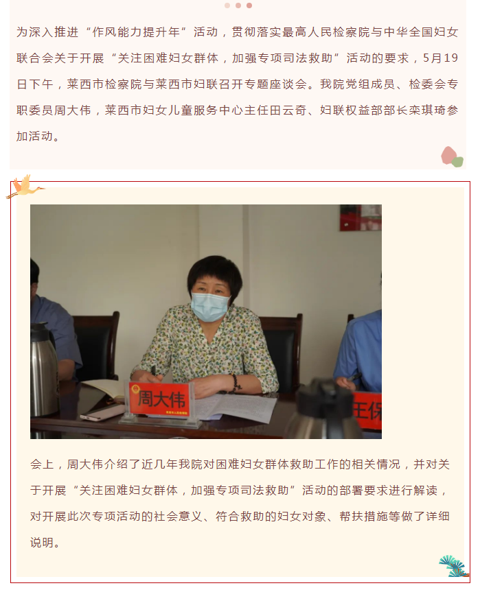 【作风能力提升年】莱西市检察院、莱西市妇女联合会联合开展专项活动 加大对困难妇女群体救助帮扶力度