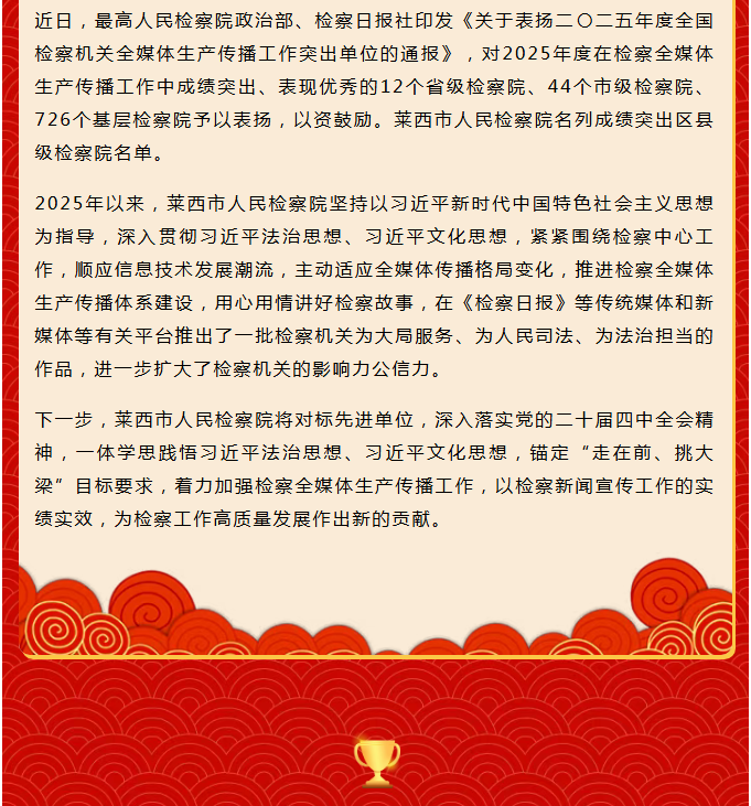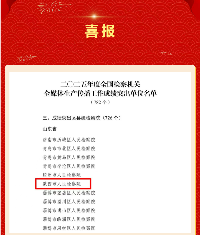 【喜报】莱西市人民检察院获评“全国检察机关全媒体生产传播工作突出单位”称号