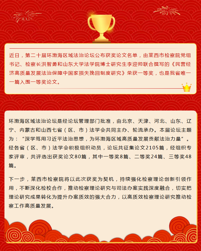 【喜报】全省唯一!莱西市检察院在第二十届环渤海区域法治论坛荣获一等奖