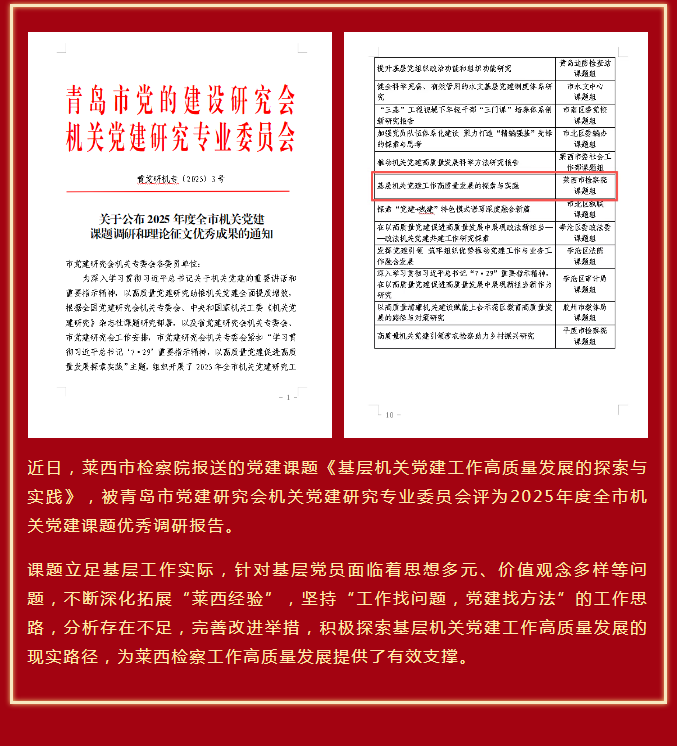 【喜报】莱西市检察院在青岛市机关党建课题调研中获奖