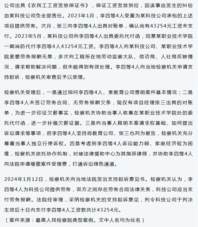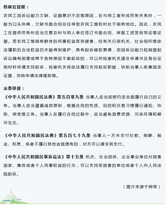 【莱检说法】第125期:农民工提供劳务后未足额获得报酬的,可向检察机关申请支持起诉