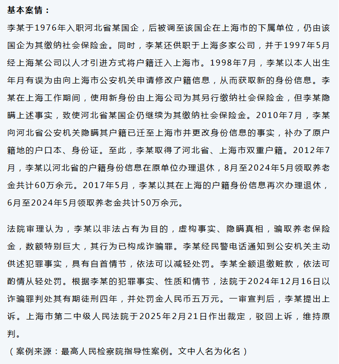 【莱检说法】第131期:骗建双重户籍,领两份养老金,构成犯罪!